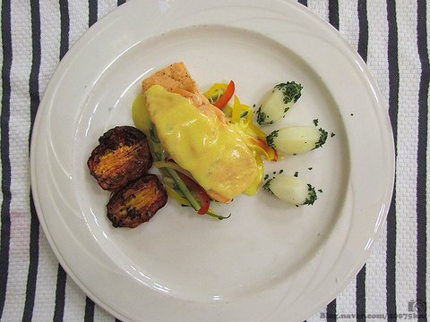 제대로 만든 홀랜다이즈 소스를 맛보고 싶어서 주문한 연어 요리. 적절하게 조리된 연어와 홀랜다이즈 소스의 조화도 좋지만