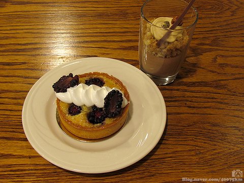 하나만 먹어야지 결심했다가도 '크기가 작으니 오늘은 괜찮겠지'라고 비겁한 변명을 하며 가져온 타르트와 초콜렛 무스.