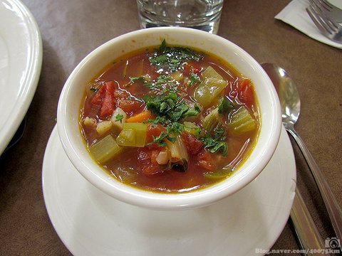 뉴잉글랜드식 클램 차우더. 조개와 토마토로 맛을 낸 수프입니다.