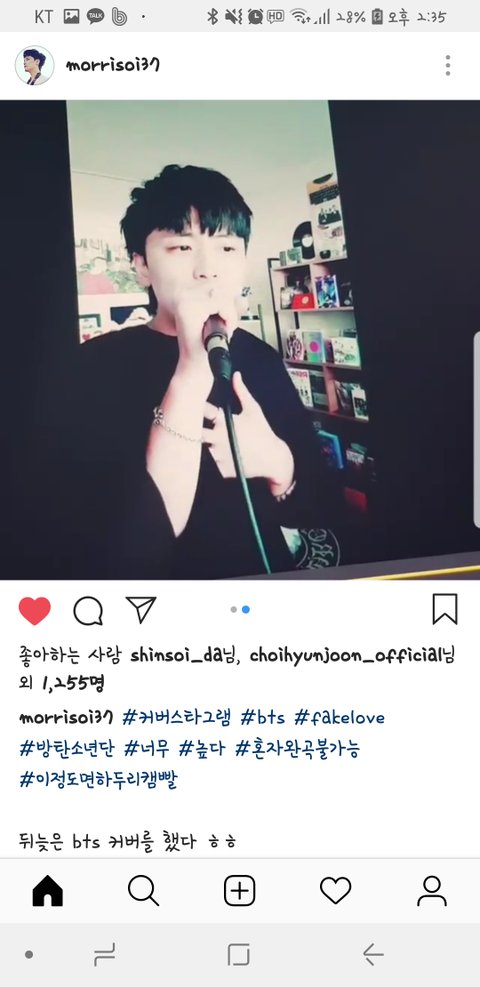 방탄소년단의 노래를 커버해서 sns에 올리셨거든!