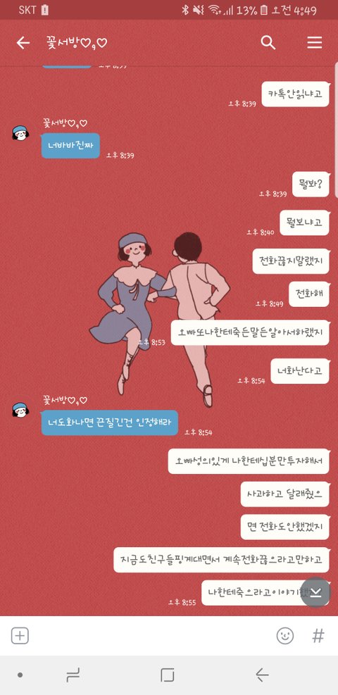 계속 카톡한다고..... 미안하다고 했는데 지랄좀 말랍니다