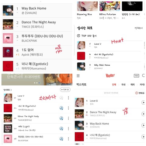 음원사이트 4곳 ㅋㅋㅋㅋㅋㅋ 솔직히 노래못하는애들이 차트에 있는게 대단한거아님?