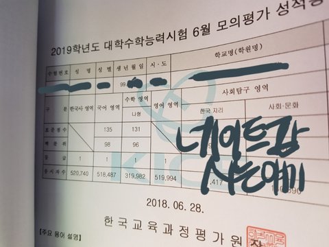 생년은 일부러 안 가렸습니다. 재수생인 거 확인하시라고요.