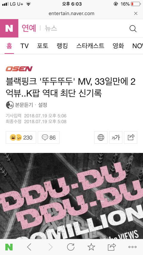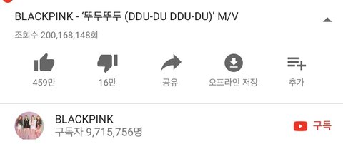 양현석 인스타 보고 깜짝 놀라서 유튜브 들어갔는데 진짜 2억뷰 .. K팝 그룹 역대 최단 신기록이래 이정도면 빌보드길 걸어야하는거 아니냐 블핑팬은 아닌데 이번에 뚜두뚜두 노래가 너무 좋아서 개인적으로 응원하고 있었는데 진짜 대단한거 같아 ㅋㅋ