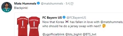 이번에 월드컵에서 뛴 독일 축구선수 훔멜스라고 유명한 선수인데 SNS에서 자기는 블랙핑크랑 유니폼 교환하고 싶다고 ㅋㅋ.. 진짜 월클이긴 하구나 싶었음 월클=월드클래스
