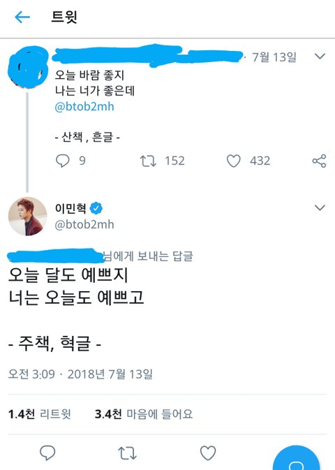 1. 팬이 보낸 멘션에 답장 자주 해줌