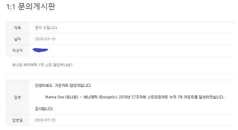 ❤워너원 에너제틱 2018년 27주차에 스트리밍차트 누적 1억 스밍 달성❤