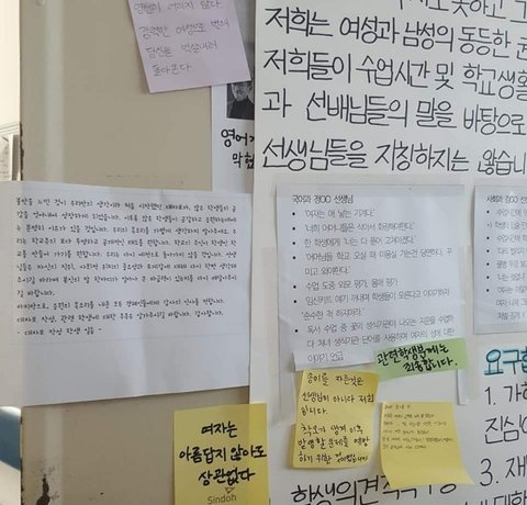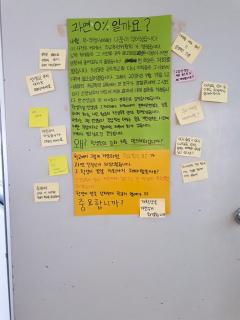 어느 선생님께서는 저 대자보를 떼려고 하시기도 했습니다. 저희의 의견을 들어달라는건데 그걸 묵살하려고 하신거죠.