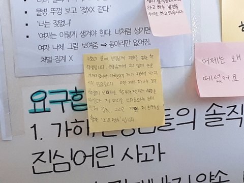 학생들의 피해사례가 계속해서 나왔습니다. (위에 대자보 내용 참고하시면 됩니다) 그러나 이 자리에는 성희롱 발언을 하신 선생님들은 한분도 보이지 않았습니다. 진정으로 있으셔야했던 분들은 어디로 가신건가요?