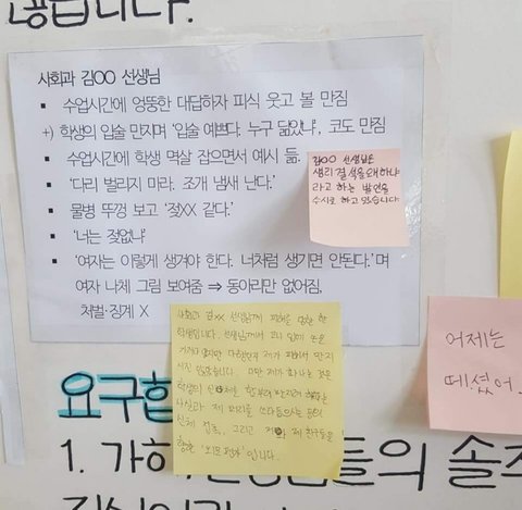 상황이 진행됨에 따라 여전히 상황을 정확히 파악하지못하시는 분도 계셨지만 학생들의 고통에 공감하시는 분도 계셨습니다. 그리고 교육청과 경찰에 신고를 하신 선생님도 계셨습니다.