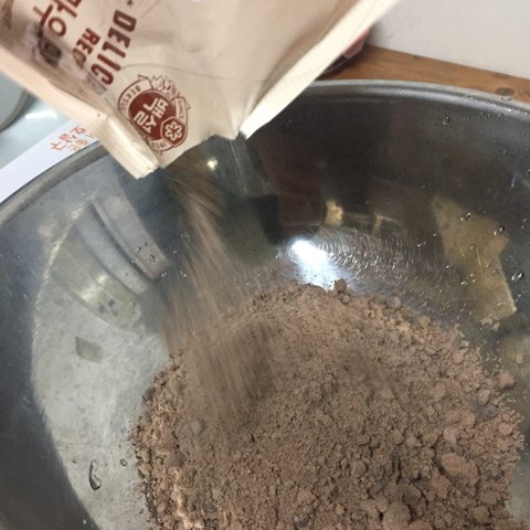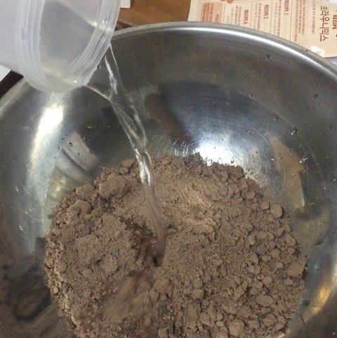들어있는 분말가루를 반죽그릇(아무그릇)에 넣고