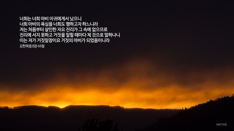 기록된 말씀인 성경(聖經)은 하나님의 말씀입니다. 천국에 들어갈 수 없음은 곧 영원한 벌을 받게 되는 것이기에 생명(生命)이 끊어지는 것과도 같습니다.