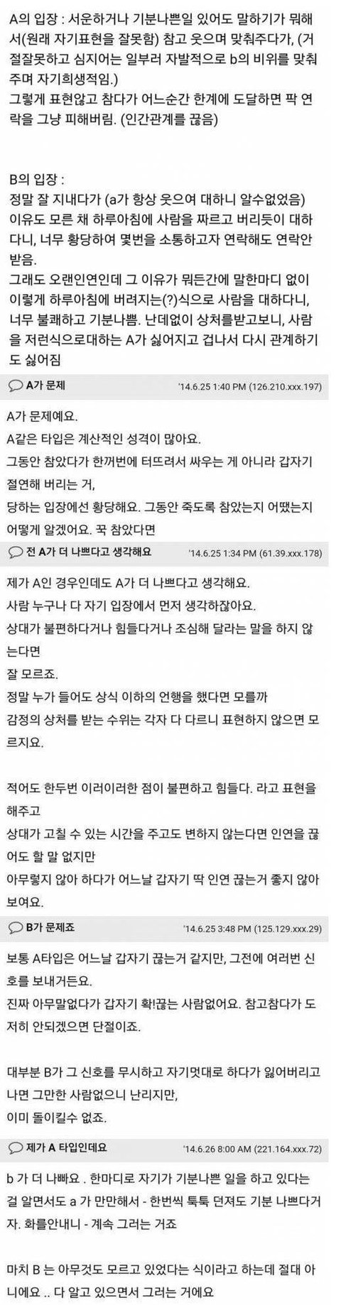 완전 공감합니다!! 정말 그런사람 옆에 두고있어봤지만 조금만 빈정상하거나 다투면 무조건 헤어지자고 하거나 연락끊습니다 제가 다 받아..