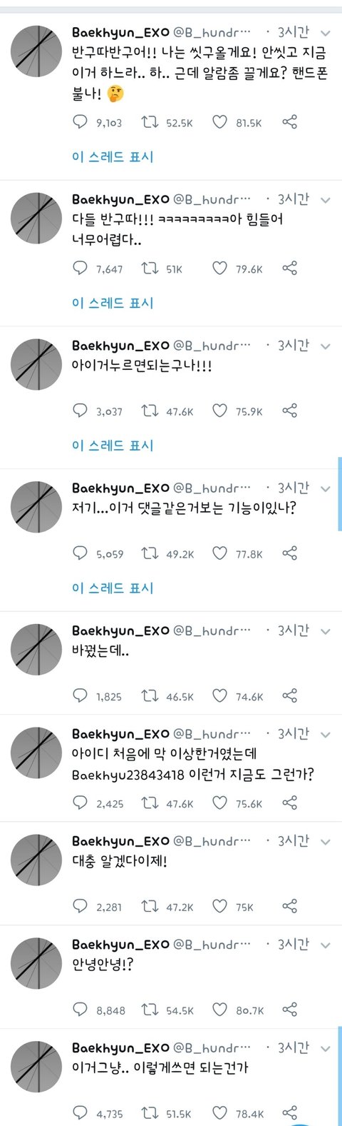 비밀계정 만들다가 걸려서 발연기하는 백현.JPG