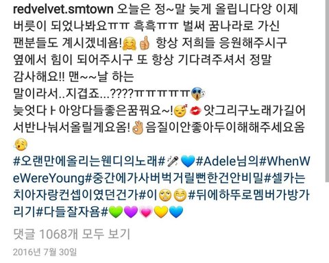 SNS에 웬디가 글 올린거ㅋㅋㅋ