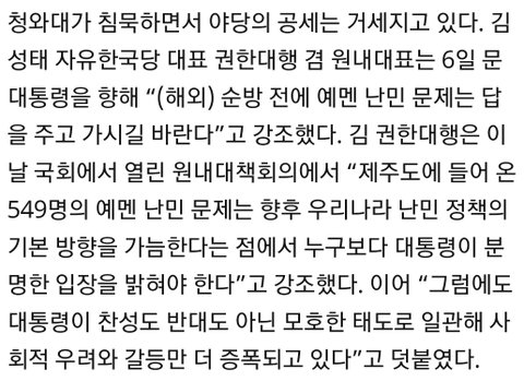 청원이 70만명이 넘었는데도 난민에 대해 언급조차 안 하는 문씨