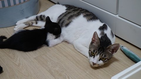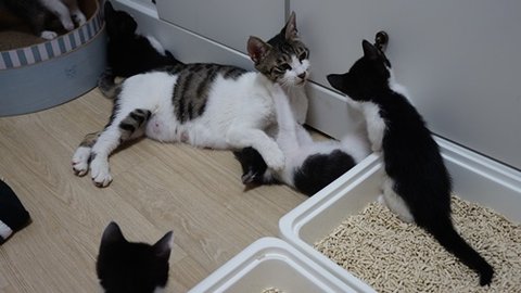 아깽이들은 여전히 엄마 모유를 간식삼아 먹고있음