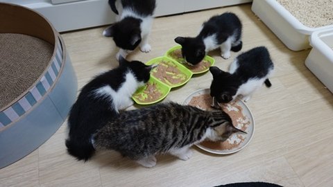 그동안 미소와 다섯마리 아깽이들은 먹는게 엄청나졌고 ㅋㅋㅋㅋ