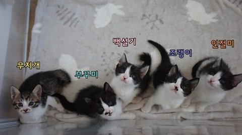 다섯마리 다 비슷하긴 하지만 조랭이가 순하고 순하고 순함 ㅋㅋ