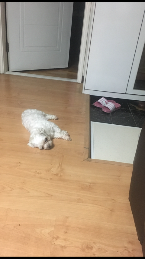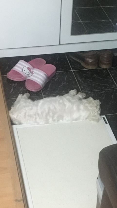 울집멍뭉이 넘더워서맨날신발장에 누워있음 글서 대리석쿨매트 사줬능데