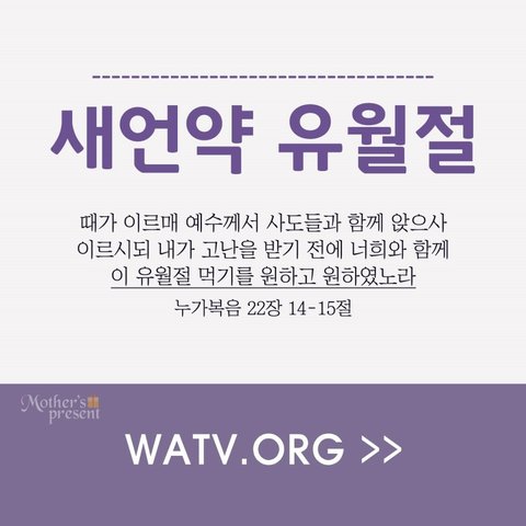 마 26/17~26 무교절의 첫날에 제자들이 예수께 나아와서 가로되 유월절 잡수실 것을 우리가 어디서 예비하기를 원하시나이까 ... 저희가 먹을 때에 예수께서 떡을 가지사 축복하시고 떼어 제자들을 주시며 가라사대 받아 먹으라 이것이 내 몸이니라 하시고 또 잔을 가지사 사례하시고 저희에게 주시며 가라사대 너희가 다 이것을 마시라 이것은 죄 사함을 얻게 하려고 많은 사람을 위하여 흘리는바 나의 피 곧 언약의 피니라