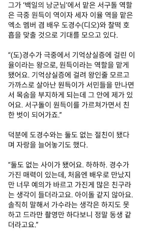 백일의 낭군늼 배우분 인터뷰 경수 언급