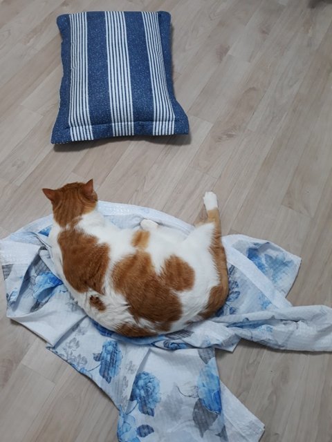 집사 덮을려고 여름이불 샀는데 도칠이가 사용중임..