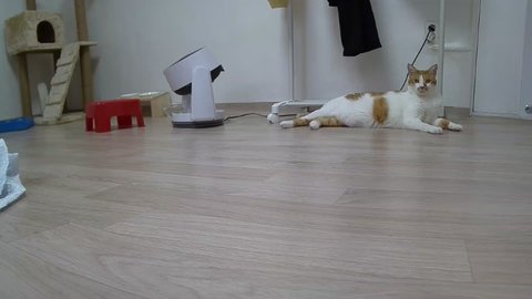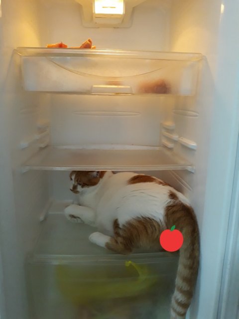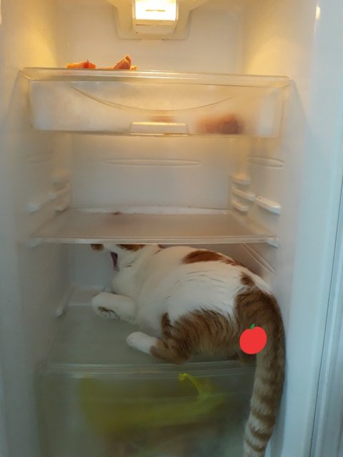 냉장고 문을 열자 냉장고안으로 도망을 감.
