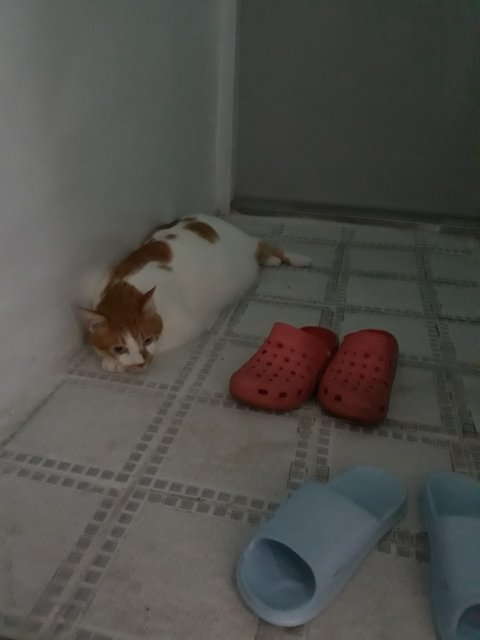 사람들이 들락거리니까 화장실에 들어가서 숨어버림.