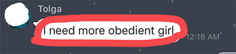 그런 반면에 여자는 순결을 지켜야된다는 이분법적인 사고를 가지고 있지. 만약 자기 부인이나 여친이 그럴 경우는 명예 살인도 저지를 수 있어. 이건 터키 여자랑 사겼던 다른 친구가 보낸 문자야.
