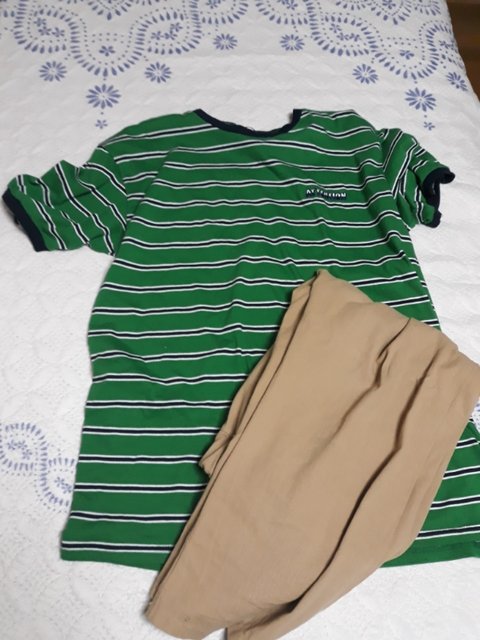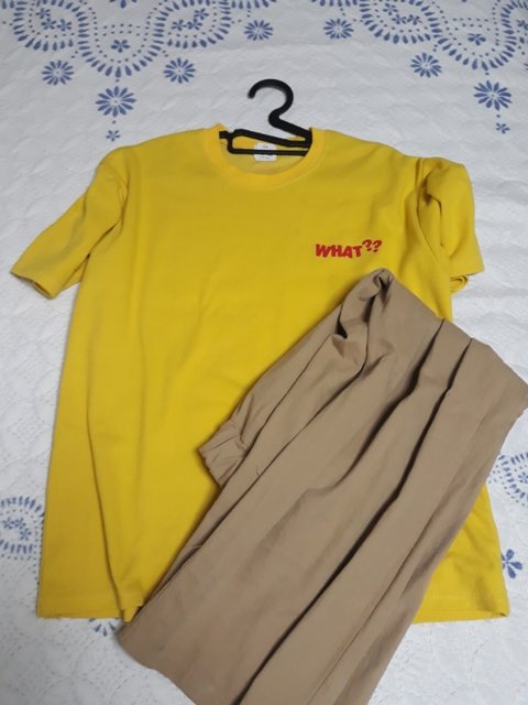놀러가서 입을려고 시킨 티셔츠가 안와서 집에있는 티로 코디해봤는데 이상해 ?? 베이지 바지에는 무슨티가 어울려 ??