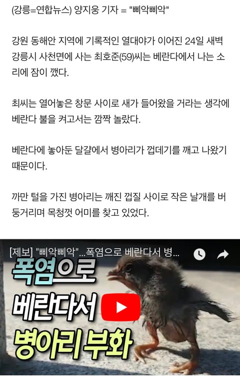 미친;; 폭염으로 베란다서 병아리 부화;;;;;