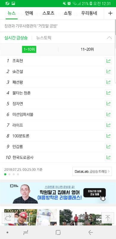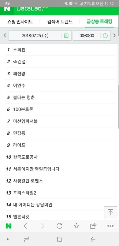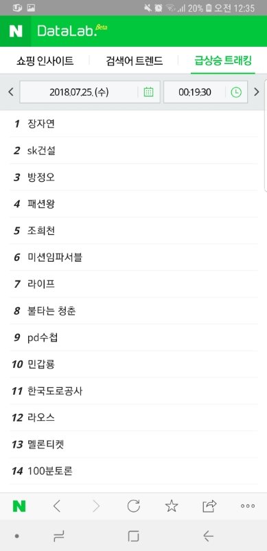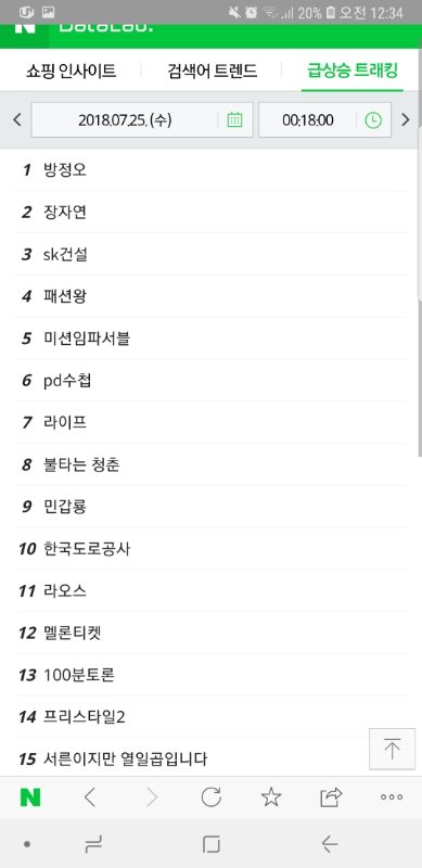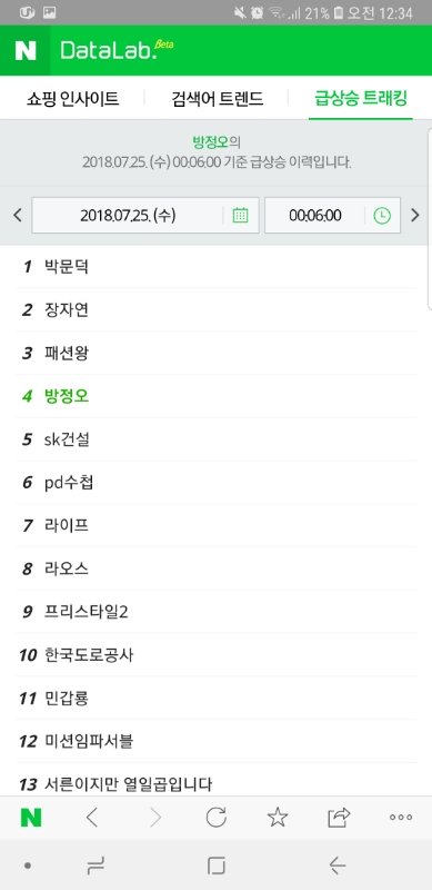 오전 12시30분경 네이버 datalab 급상승 트래킹으로 보았을땐 장자연이 있지 않고...