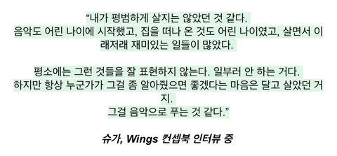 (⬆️좌우명이 i dont give a shit. 내게 신경끄라는 윤기 본인이 직접쓴 슈가사용설명서)
