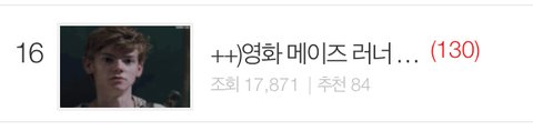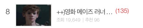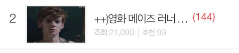 헐 실베 19위 너무 고마워ㅠㅠㅜㅜ비록 메이즈 러너 시리즈는 끝났지만 덕질은 계속 하자ㅠㅜㅜㅜ