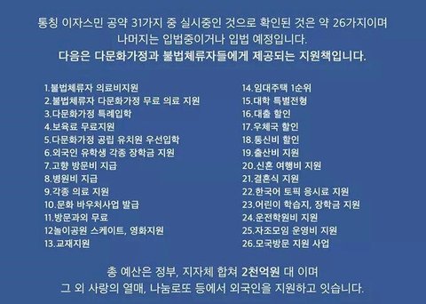 대한민국은 단일민족국가고 우리문화 중심입니다. 물론 요즘같은 글로벌 시대에 다른인종 다른문화 이해해야한다고 다 똑같아야 한다고 말이 많아요. 근데 우리의 소중한 문화가 우리가 지내고 있는 땅덩어리들이 우리의 국민이 보호받지 못하면서까지 수많은 외국인과 불법체류자, 난민들까지 받아야 할 이유가 있을까요? 우리가 그들을 이해 못해주는게 아니라 우리가 위협받고 있고 우리 땅 내주고 우리세금으로 그들을 너무한다 싶을만큼 많이 지워해주고 있습니다.... 우리나라인데 법이, 정부가 그들을 너무 옹호해요. 사실 우리나라에서 살려면 우리나라 문화를 따르고 우리나라 법을 따라야지 언론이나 미디어 매체 같은 곳에서는 그들의 문화를 보여주면서 이러이러하니깐 우리가 이해해야한다 그들은 그들문화가 있으니깐 침범하지 말자 우리나에서 얼마나 힘들겠니 하면서 각종 의료비, 가정지원금, 고향방문비 등 자국민이 생각지도 못한 각 종 비용들을 가져다 주고 있습니다. 불법체류자들 한테까지 말이에요... 그럼 이 돈들이 저들의 주머니에서 세금이란 걸 낸 돈일까요? 아니요 우리가 우리 부모님들이 낸 국민혈세엡니다. 저들이 우리나라에 들어와 살 길 바랬으면 우리가 배려하고 이해하는 게 아니라 저들이 우리한테 맞춰야한다고 전 생각합니아. 그리고 다른 국가들도 난민이라고 헤서 혜택따위 하나도 없어요. 우리나라는 선진국도 아니고 오히려 자국민들이 더 힘들어져 가는 상황인데 저들은 우리나라 들어오면 살데 걱정말라고 집구해주고 외국이니 힘들거라고 생활비지원에 취업지원까지 정말 정말 불합리한 혜택을 주고 있습니다. 그리고 이러한 것들 때문에 인천에서는 이집트 난민 신청자들이 제주도에서는 예멘 난민 신청자들이 매주 몇백명씩 들어옵니다. 매 달이 아닌 매주..... 현 정부만 믿고 태평히 있고 관심없는 사람 많은데 제가 쓴 글은 아주 극히 일부인 내용 뿐입니다. 제발 이런 글 좀 많이 많이 봐주고 심각성을 깨달아 주었으면 좋겠습니다. 포털과 언론에서 이러한 자국민을 보호해주기는 커녕 사실 말하는 것을 통제하고 사실을 말했다해도 금방 묻히게끔 삭제와 비허용을 하고 있습니아. 제발 여기 대한민국은 우리나라입니다. 우리를 위한 나라입니다.