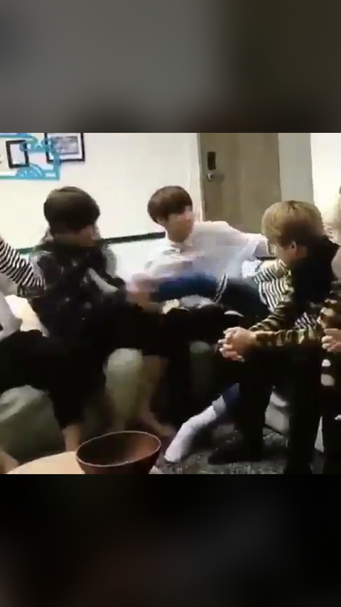 윤기가 태형이 장난으로 발로 차는건뎅 무슨영상읹 알수잇ㄴ을깡?