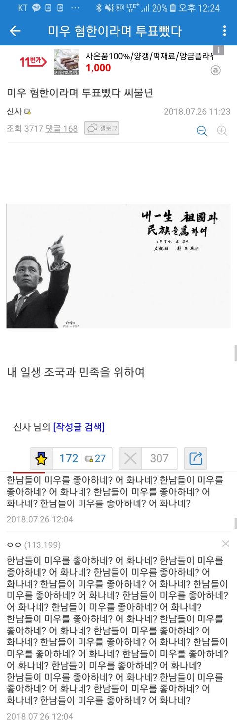 ✔[1] 프듀48에 출연하는 김나영 이라는 연습생이 위안부 할머니들을 후원하는 기업의 폰케이스를 샀다는 이유만으로,