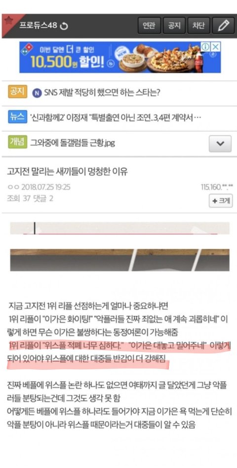 ✔[2] 일명 고지전 사건. 프듀48갤에서 작당하고 현재 프듀 1위중인 이가은을 끌어내리고자 몰려가서 이가은 네캐영상 베댓을 전부 비추테러해서 없애버림