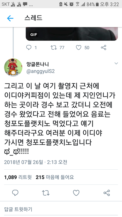 경수도 나처럼 카페 가면 쥬스나 플랫치노나 에이드 시켜 먹는 것 가투넹