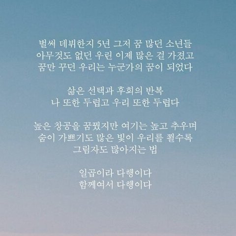 방탄소년단 노래 나오면 관심있게 듣는 머글(?)인데 방탄 말 되게 이쁘게 해서 팬톡에다 다시 옮겨 적엉 우연히 이 사진들을 보게 됐는데 얘네는 시집 한편 써서 내도 될거같애 진짜