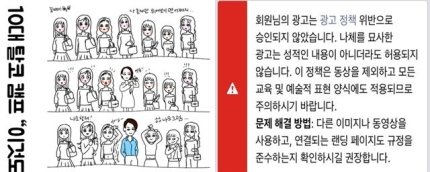 페이스북은 사전 심사를 거쳐 유료 광고 승인 여부를 결정하는데, 포스터 속 한 캐릭터가 문제 됐다. 포스터에는 긴 머리에 치마를 입고 화장한 여성 캐릭터들이 다른 사람의 시선을 의식하지 않고 머리를 짧게 자르거나 바지를 입는 등 개성 있는 모습으로 변신하는 과정이 담겼다. 그런데 이 중 한 캐릭터가 상의를 벗은 모습으로 변신한 게 문제로 거론됐다. 페이스북은 이 캐릭터에 대해 “나체를 묘사한 광고는 성적인 내용이 아니더라도 허용되지 않는다”며 광고 승인을 거절했다.