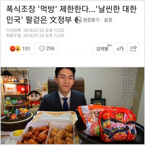 아니 쒸발 다이어트 할 때 먹방 보면 대리만족 되는데 무슨 비만 때문에 먹방을 제한한대? 딴 거나 좀 하라 하지