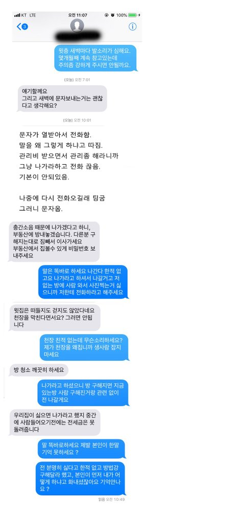 (4개월 전 쯤 저번에 한번 제가 시끄럽다고 말 해달라고 말한적이 있어요)