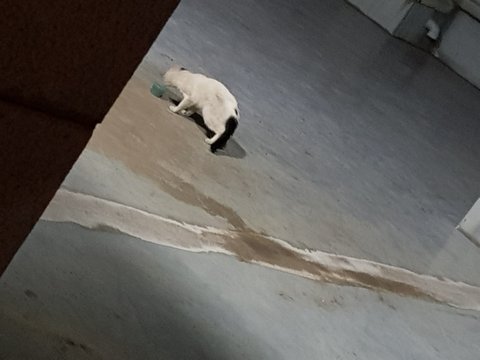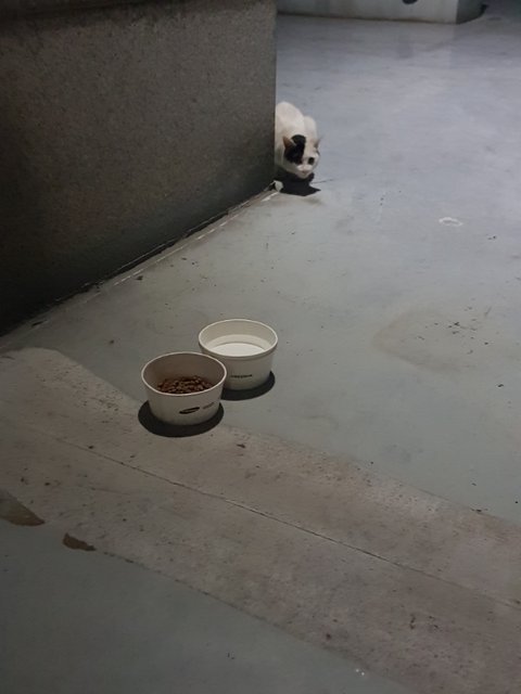 그냥 잡아서 보호소에 데려가고싶었는데 만질려하면 캬아악 거리면서 도망가고... 아무튼 경계 풀어볼려고 강아지 사료를 조금 가져왔더니 반응이 있더라고요 ㅎㅎ