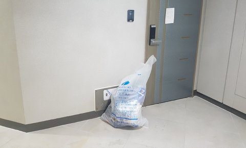 하지만 지난주 혜성처럼 100리터의 쓰레기봉투는 다시 등장하였고 오늘까지 지난번 그 자리에 또아리를 틀고 있습니다. 심지어 여름고온 버프까지 받은 녀석은 엄청난 악취로 복도를 장악하고 있습니다.