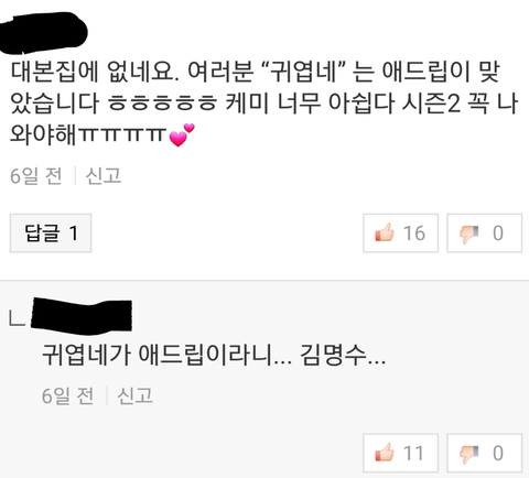 같은 방에서 일 못하겠다고 해서ㅋㅋ 바르니가 귀엽네 라고 했던 부분)