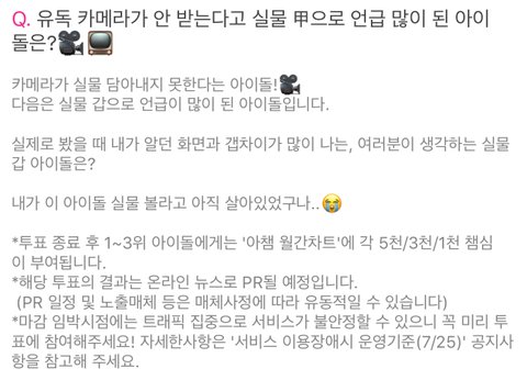 유독 카메라가 안 받는다고 실물 甲으로 언급 많이 된 아이돌은?