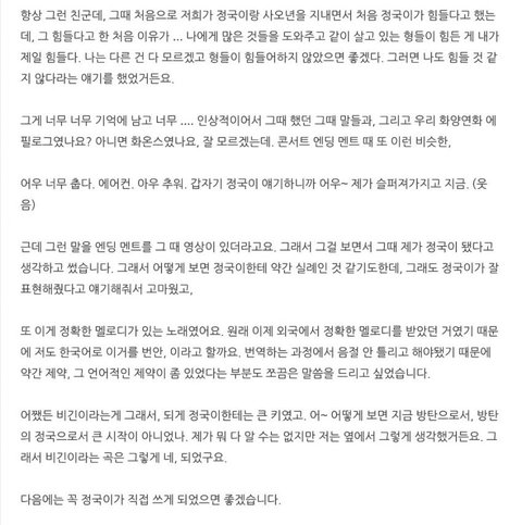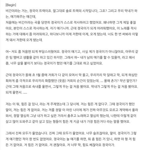 정국이의 첫솔로곡, 방탄 헌정 효도송 비긴을 듣다 생각난건데