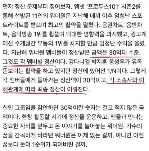 초딩아 1인당 30억이면 몇몇 멤버는 자기네 기획사 살 수도 있음ㅋㅋㅋㅋ 이거 아니라고 밝혀졌는데 아직도 믿는사람이 있구나